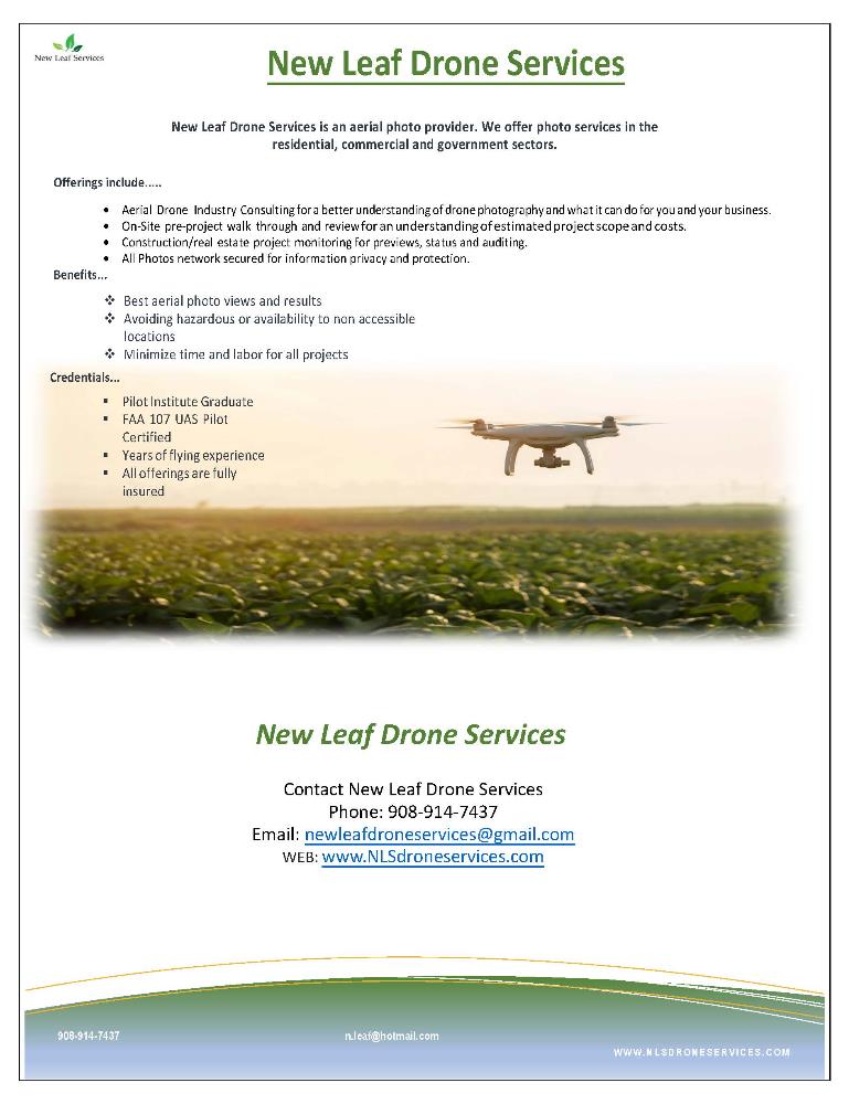 New Leaf Drone Services is an aerial photo provider. We offer photo services in the residential, commercial and government sectors. We offer Aerial Drone Industry Consulting for a better understanding of drone photography and what it can do for you and your business.